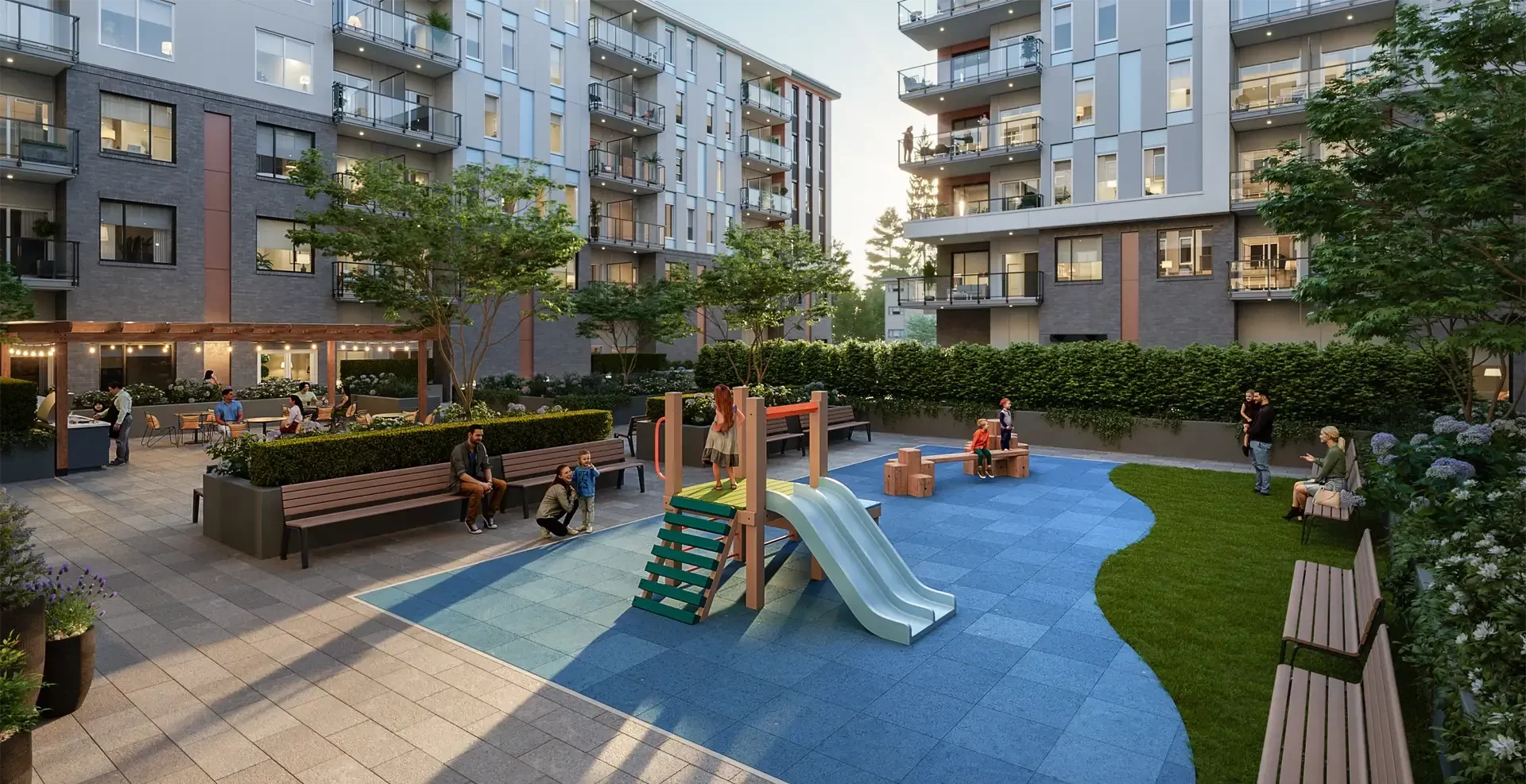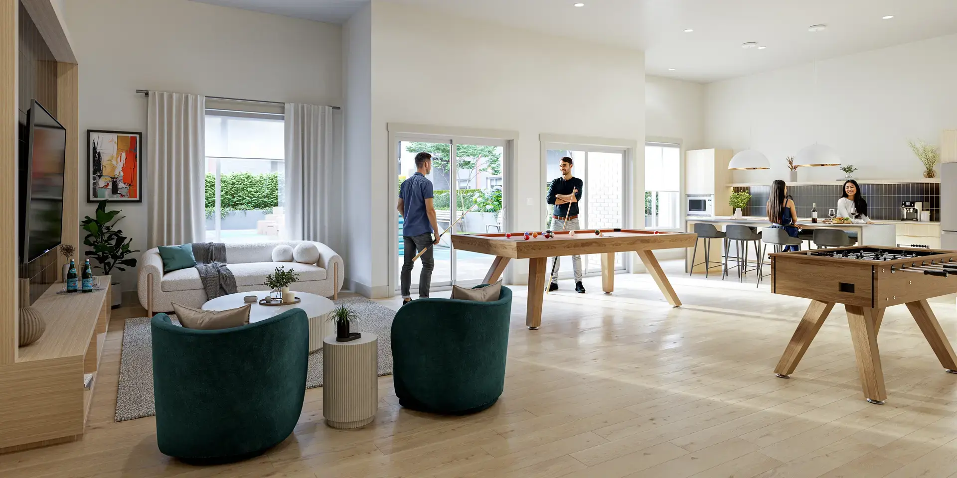Jethro provides over 10,000 square feet of resident amenities, thoughtfully arranged around a landscaped central courtyard. These shared spaces are designed to support daily living, wellness and community connection.