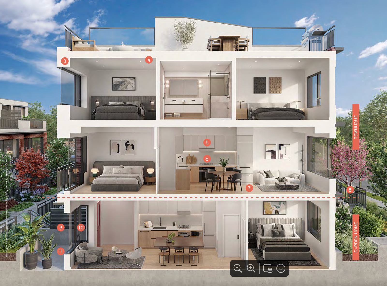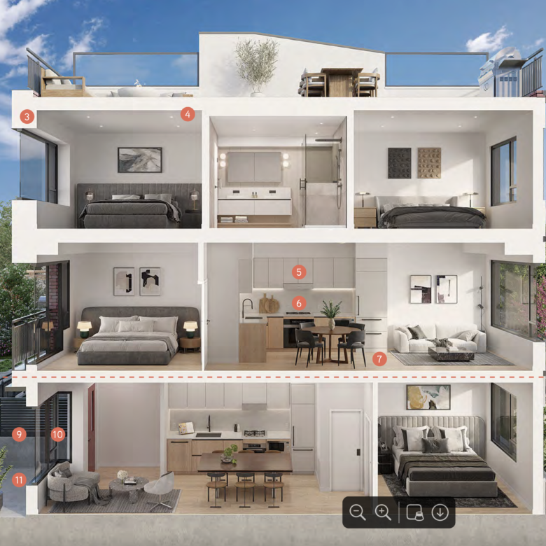 Pricing for Kinsley begins from the High $500,000s for one-bed garden homes and extends into the mid $1.4 M+ range for two-bed townhomes and mid $1.8 M+ for three-bed townhomes. The deposit program is structured at 5% initially. Already completed and move in ready Units.