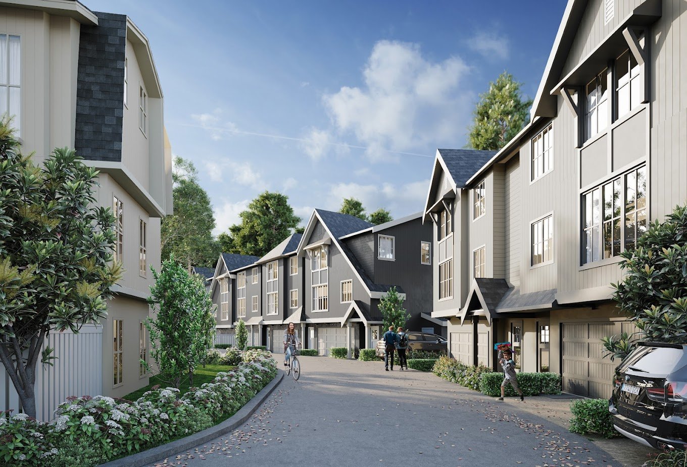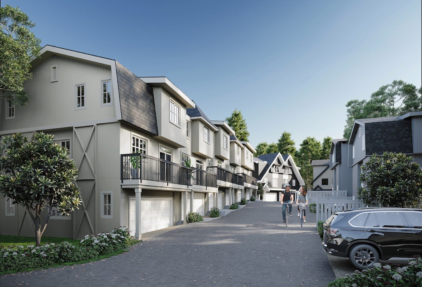 A1: The Falls is a collection of 2 to 4 bedroom modern farmhouse style townhomes within the Kanaka Springs master planned community in Maple Ridge, beside Kanaka Creek Regional Park.